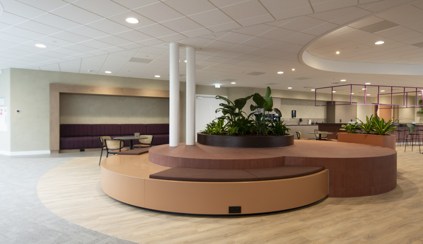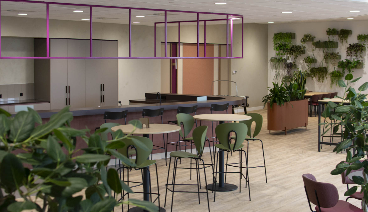 Van bedrijfsrestaurant en garderobekasten tot zitbanken, pantry’s en vergaderruimtes. Alles vormt één geheel en sluit logisch op elkaar aan.