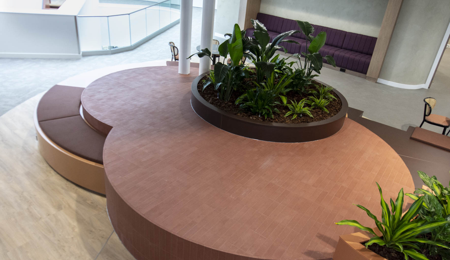 Met een formaat van 5 bij 8 meter en opgebouwd uit verschillende zitgedeeltes en hoogtes, vroeg dit om een zorgvuldige aanpak. De werkvoorbereiding speelde hierin een belangrijke rol. Niet alleen op constructief vlak, door de combinatie van materialen, maar ook in het transport en de montage op locatie.