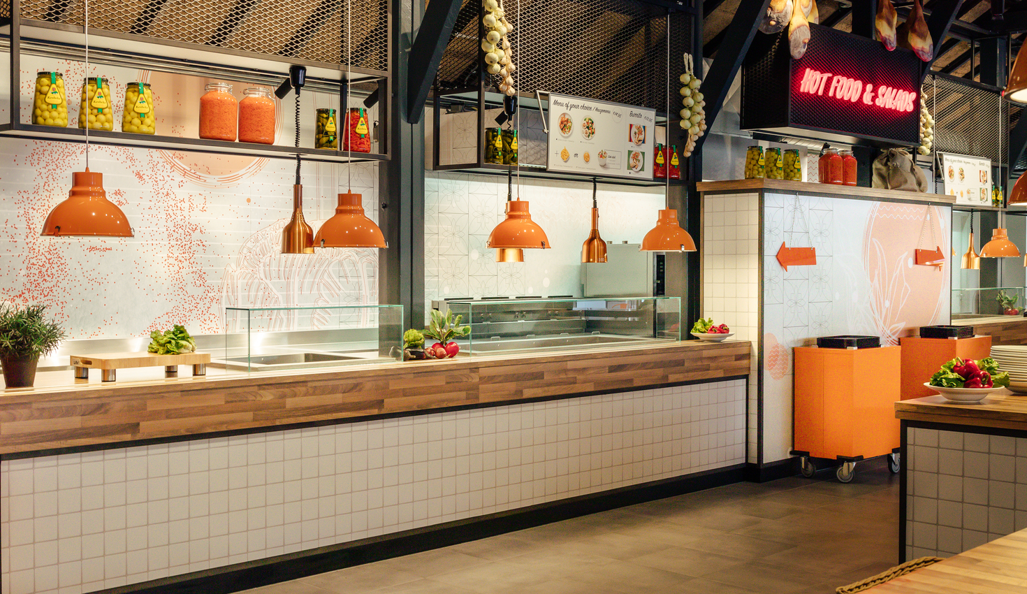 Redie realiseerde onder andere wandpanelen en omlijstingen voor tv-schermen, een grote koffiecounter, een maatwerk zitbank van ruim 20 meter, condimentenmeubels, werkeilanden, uitgiftecounters, kassameubels en metalen presentatieframes.